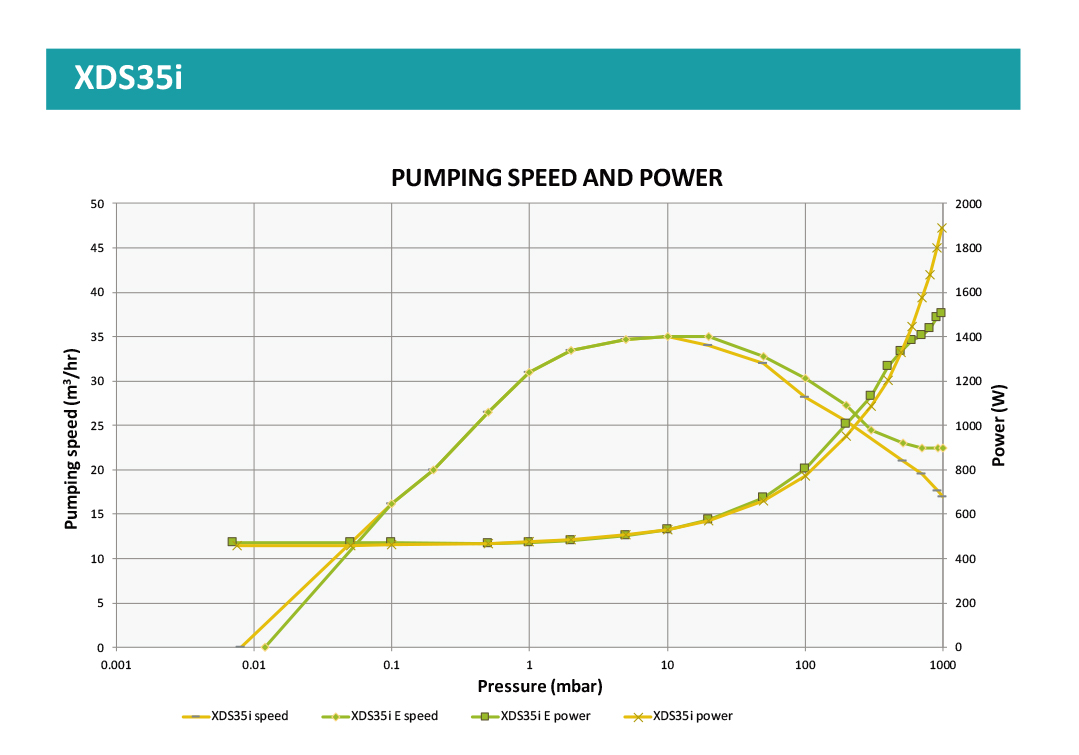 已成为必须使用干式泵送方式时的行业标配设备,泵送速度高达 40 m3h-1,已在多种应用中被证明是一种可靠且清洁的真空泵解决方案。结合获得专利的双启动涡旋形式技术和旁通阀,EDWARDS 得以提供 XDS35i 增强型系列泵,以补充我们原有的产品系列。XDS35i 采用智能驱动技术来管理泵,并在全球范围内提供一致的性能。降低了粗抽压力下的峰值电力需求,并持续提高粗抽速度:这些增强型泵使用户能够解决性能问题,并非常适用于那些对于粗抽性能或抽空大腔室容量的能力要求较高的特殊应用。增强型装置在初始抽空期间可减少多达 20% 的峰值电力需求:意味着它能够在不损失性能的情况下抽空大容量腔室。在这些粗抽压力下泵送速度可提高达 25%,这也有助于提高应用的循环频率。
